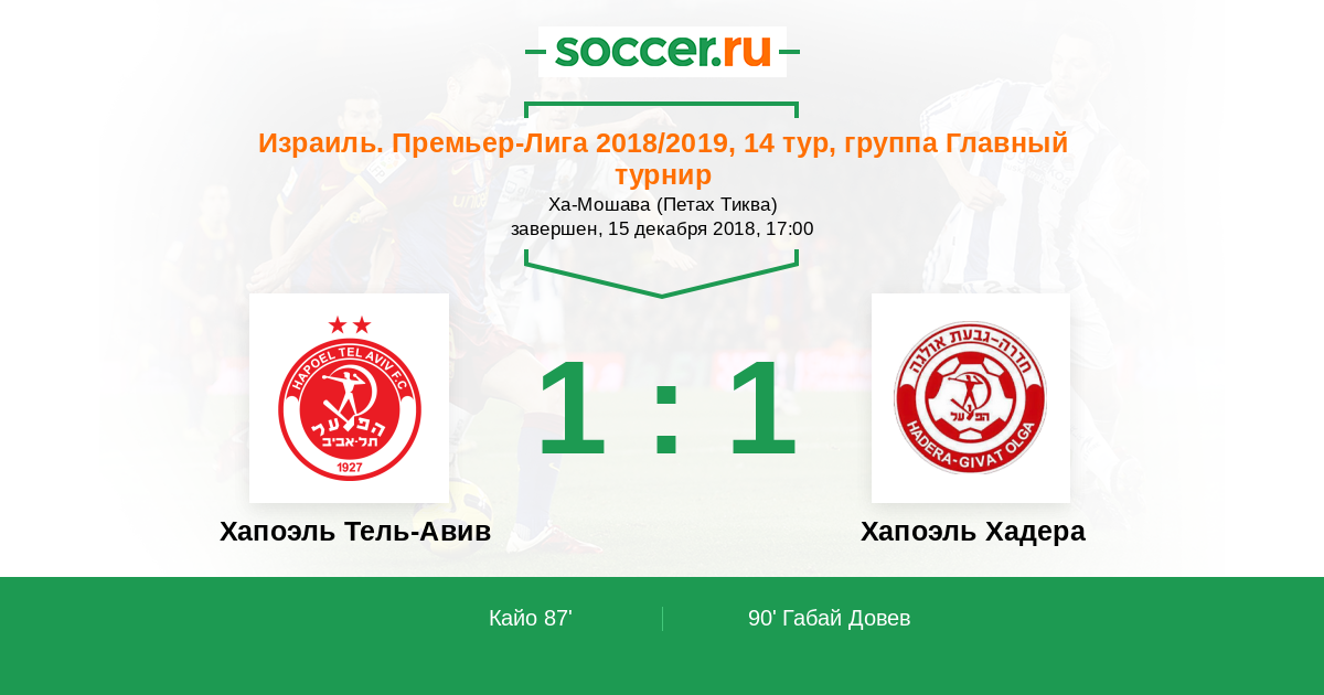Израиль. Премьер-Лига 25.08.2018 Хапоэль Хадера Логотип футбольный клуб Хапоэль Хадера 2:1 Логотип футбольный клуб Хапоэль Тель-Авив Хапоэль Тель-Авив