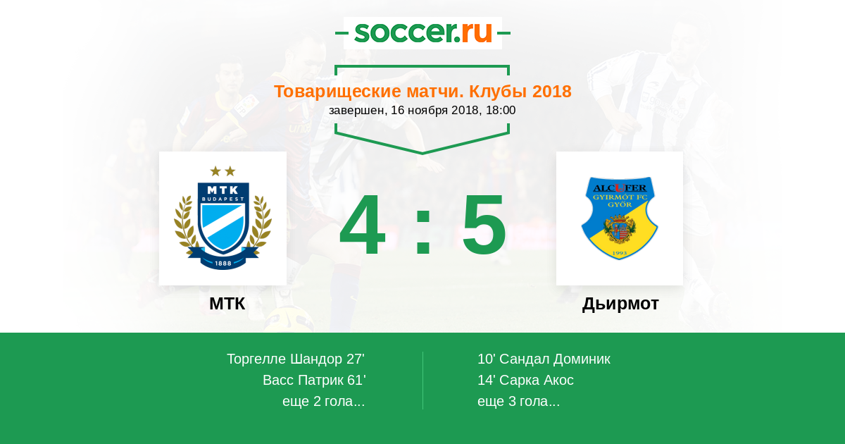 Венгрия. Чемпионат 1 22.10.2016 МТК Логотип футбольный клуб МТК (Будапешт) 1:0 Логотип футбольный клуб Дьирмот (Дьёр) Дьирмот