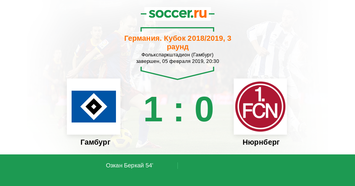 Германия. Бундеслига 2 05.08.2019 Нюрнберг Логотип футбольный клуб Нюрнберг 0:4 Логотип футбольный клуб Гамбург Гамбург