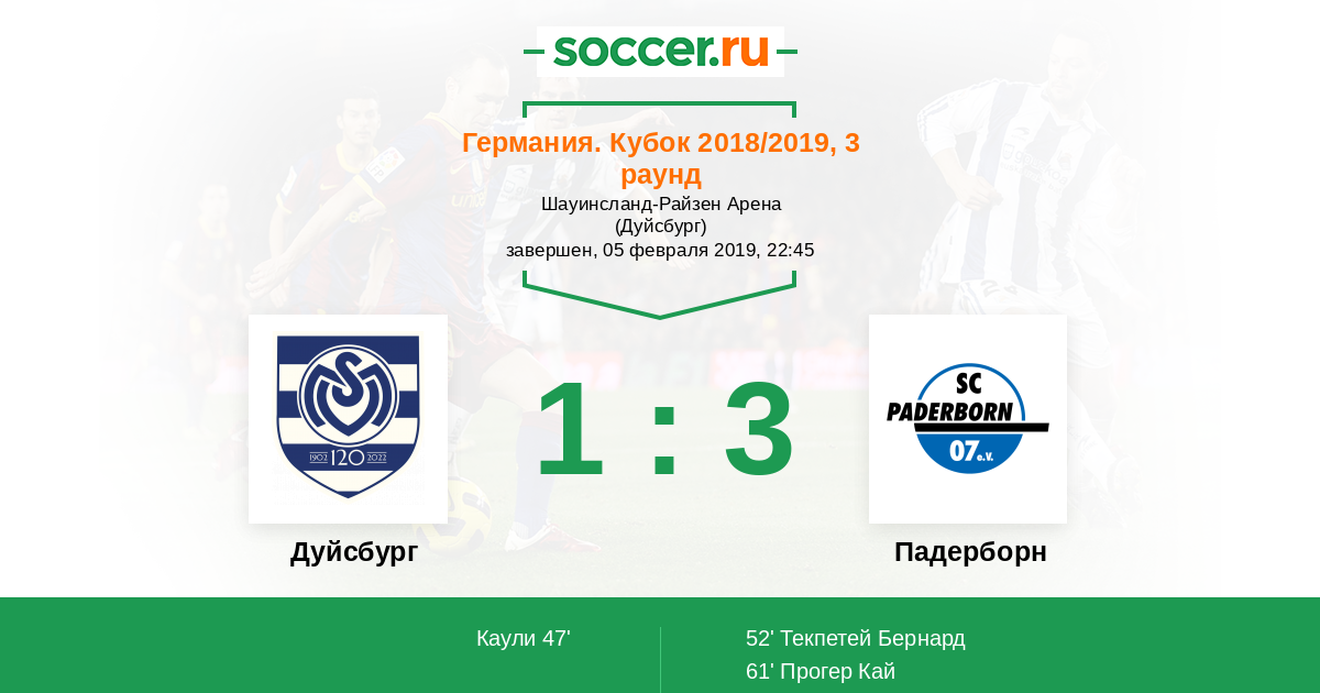 Германия. Кубок 05.08.2013 Дуйсбург Логотип футбольный клуб Дуйсбург 2:3 Логотип футбольный клуб Падерборн Падерборн