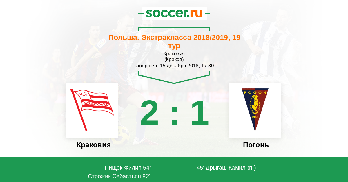 Польша. Экстракласса 25.10.2019 Краковия Логотип футбольный клуб Краковия 2:0 Логотип футбольный клуб Погонь (Щецин) Погонь