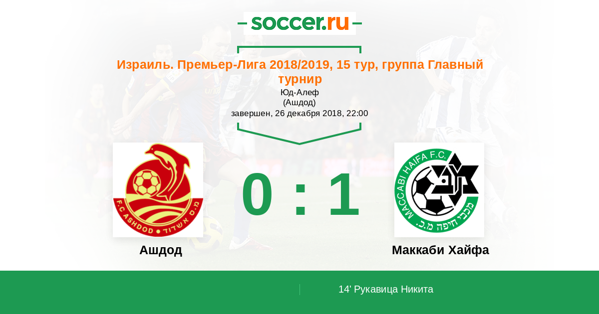 Израиль. Премьер-Лига 22.11.2014 Ашдод Логотип футбольный клуб Ашдод 1:0 Логотип футбольный клуб Маккаби Хайфа Маккаби Хайфа