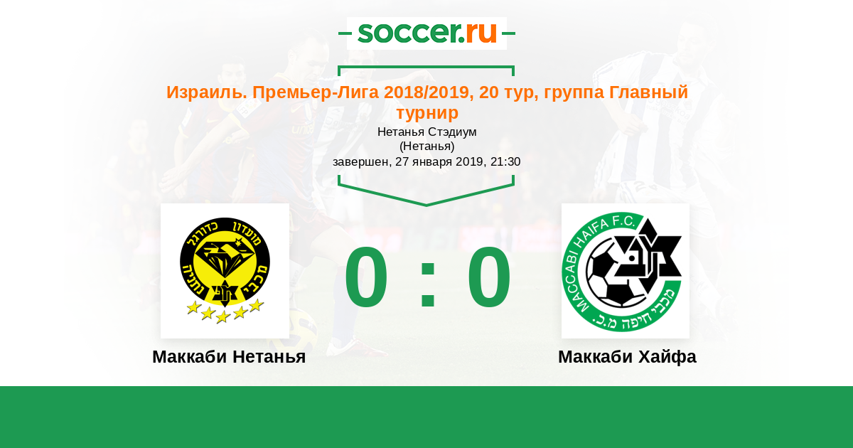 Израиль. Премьер-Лига 11.01.2020 Маккаби Нетанья Логотип футбольный клуб Маккаби Нетанья 0:2 Логотип футбольный клуб Маккаби Хайфа Маккаби Хайфа