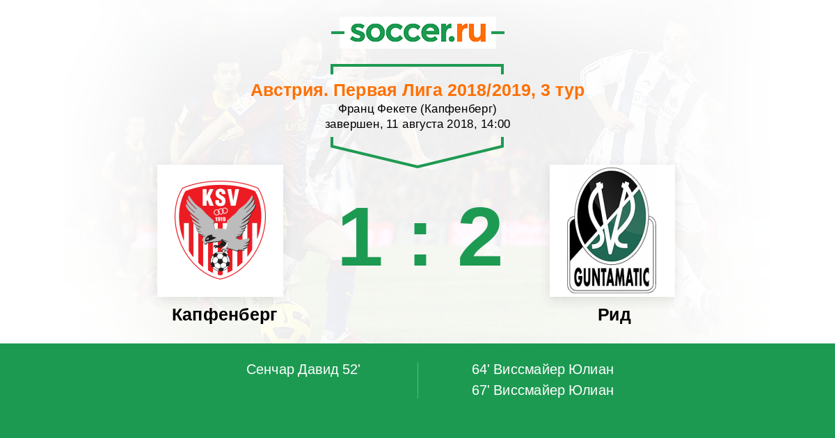 Австрия. Первая Лига 08.09.2017 Капфенберг Логотип футбольный клуб Капфенберг 2:1 Логотип футбольный клуб Рид Рид
