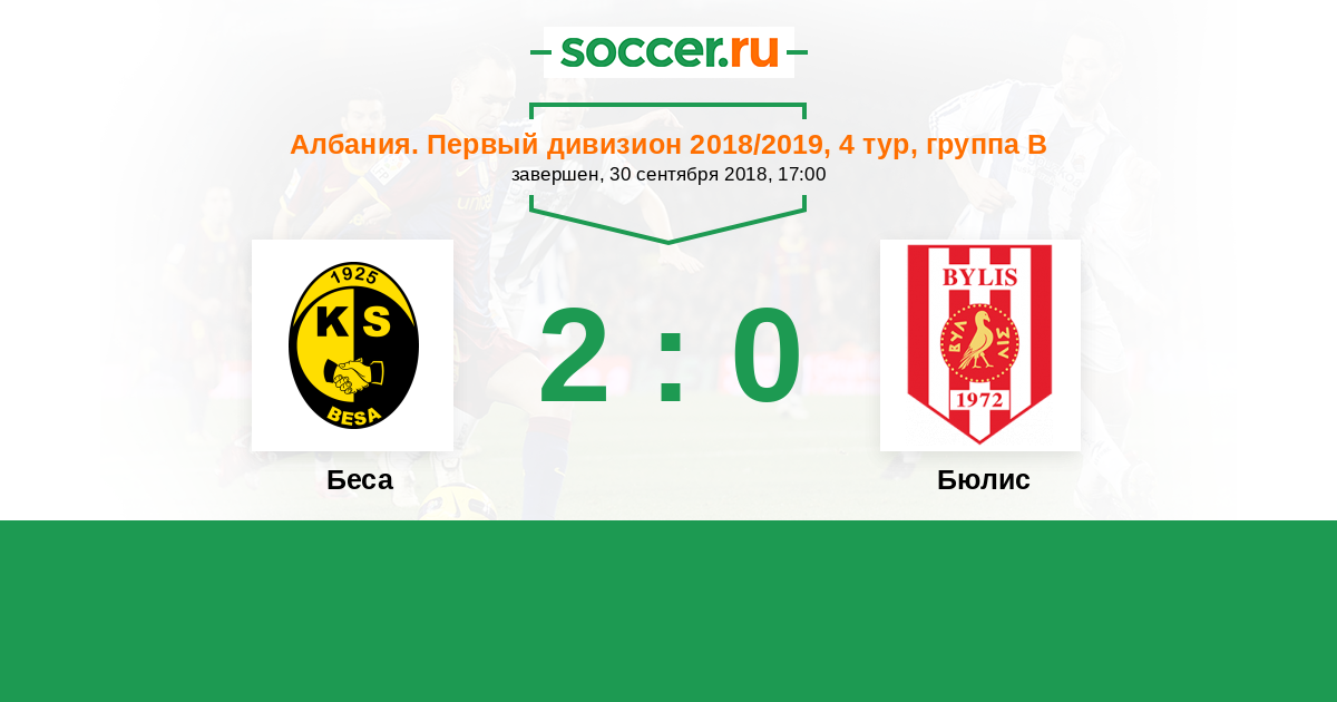 Албания. Первый дивизион 21.09.2019 Беса Логотип футбольный клуб Беса (Кавайе) 2:0 Логотип футбольный клуб Эльбасани Эльбасани