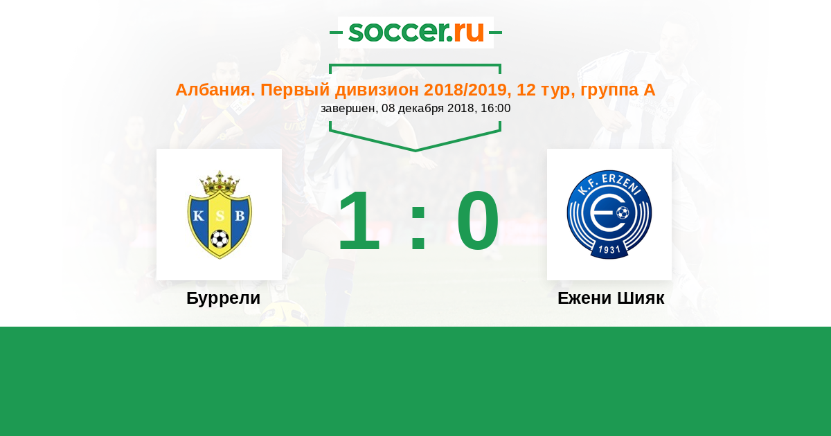 Албания. Первый дивизион 22.09.2018 Эрзени Шияк Логотип футбольный клуб Эрзени Шияк 1:0 Логотип футбольный клуб Буррели Буррели