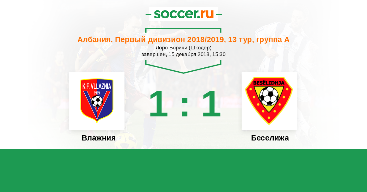 Албания. Первый дивизион 04.05.2019 Беселижа Логотип футбольный клуб Беселижа (Леже) 1:1   Влажния