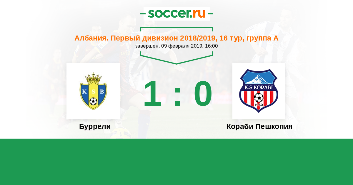 Албания. Первый дивизион 13.02.2016 Буррели Логотип футбольный клуб Буррели 0:1 Логотип футбольный клуб Кораби Пешкопия Кораби Пешкопия