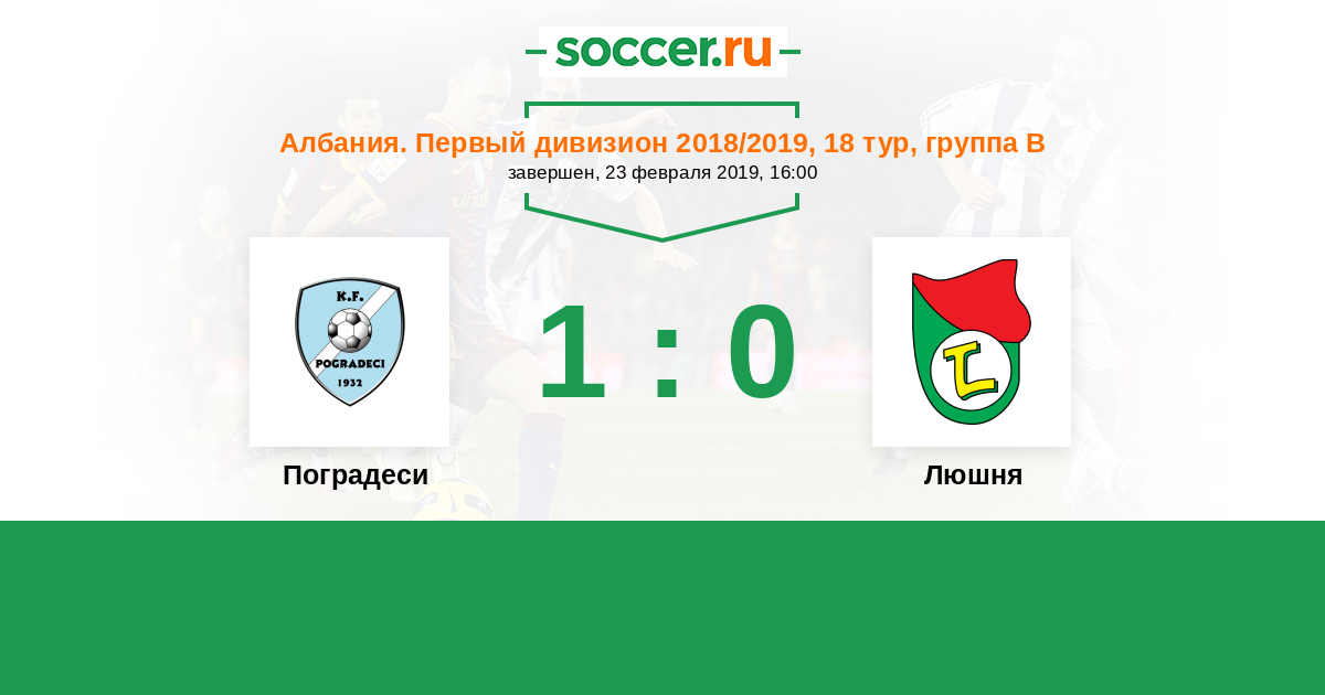 Албания. Первый дивизион 26.03.2017 Люшня Логотип футбольный клуб Люшня 2:1 Логотип футбольный клуб Поградеси Поградеси