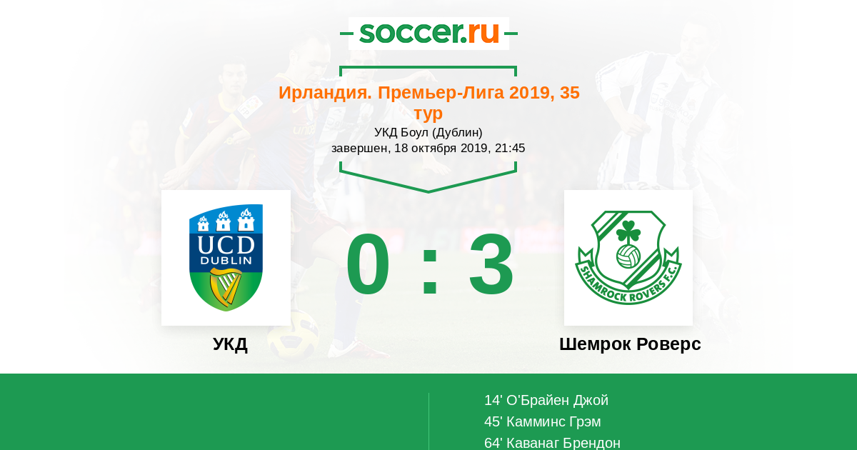 Ирландия. Премьер-лига 18.10.2013 УКД Логотип футбольный клуб УКД (Дублин) 1:4 Логотип футбольный клуб Шемрок Роверс (Дублин) Шемрок Роверс