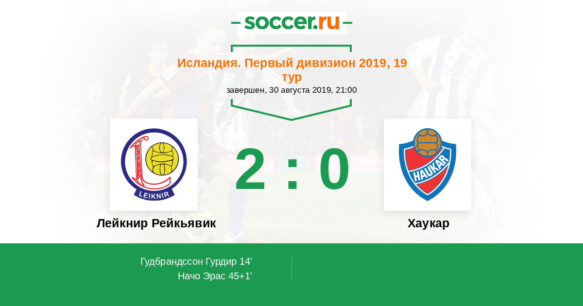 Лейкнир Рейкьявик 2:1 0:0 2:1