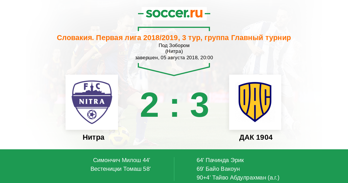 Словакия. Суперлига 15.08.2020 ДАК 1904 Логотип футбольный клуб ДАК 1904 (Дунайська Стреда) 6:0 Логотип футбольный клуб Нитра Нитра
