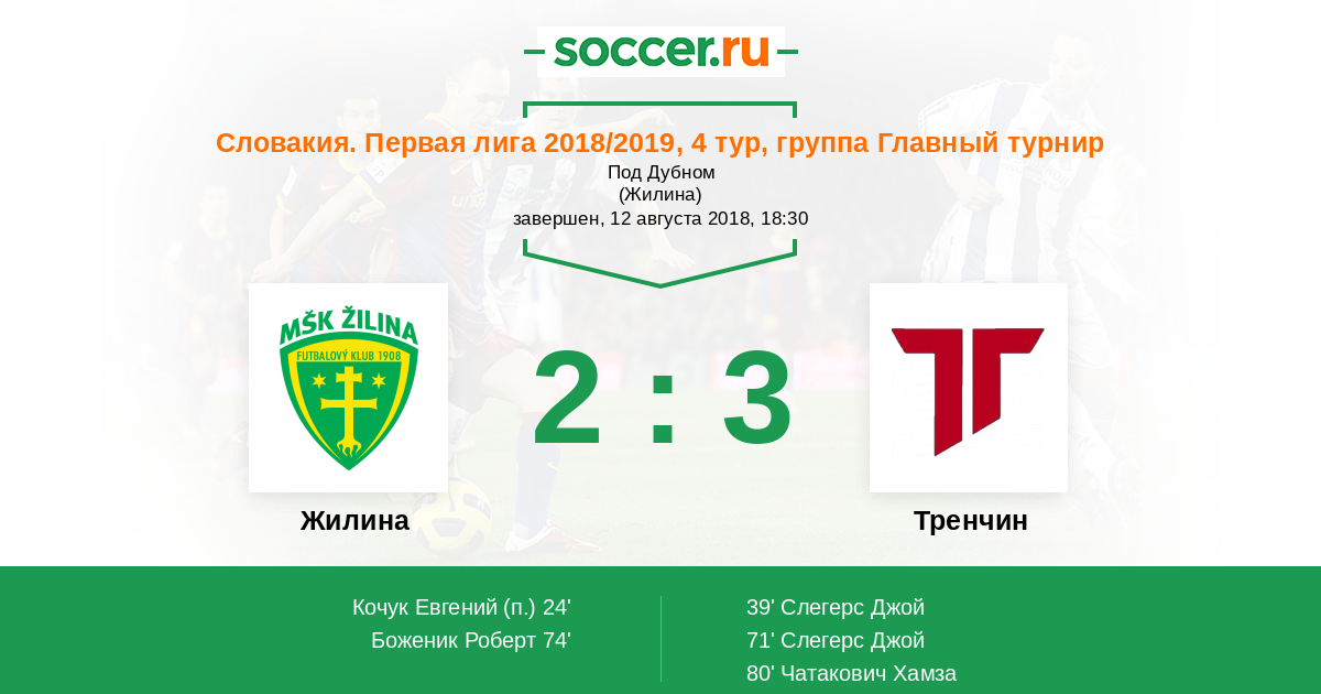 Словакия. Суперлига 03.08.2019 Жилина Логотип футбольный клуб Жилина 2:1 Логотип футбольный клуб Тренчин Тренчин