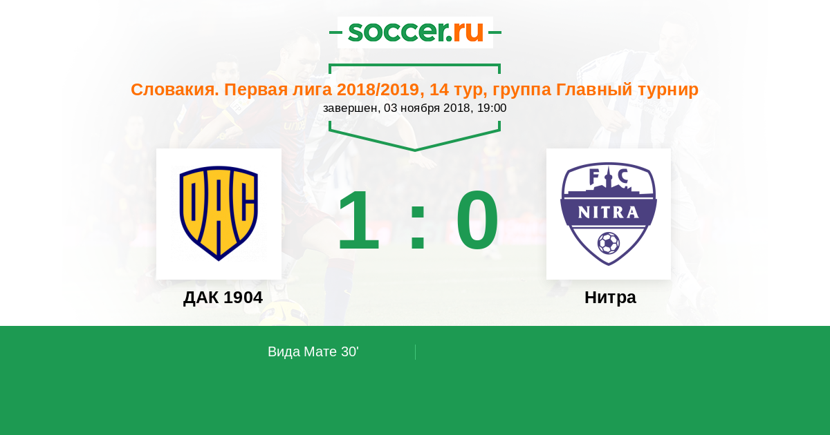 Словакия. Суперлига 30.11.2019 ДАК 1904 Логотип футбольный клуб ДАК 1904 (Дунайська Стреда) 1:0 Логотип футбольный клуб Нитра Нитра