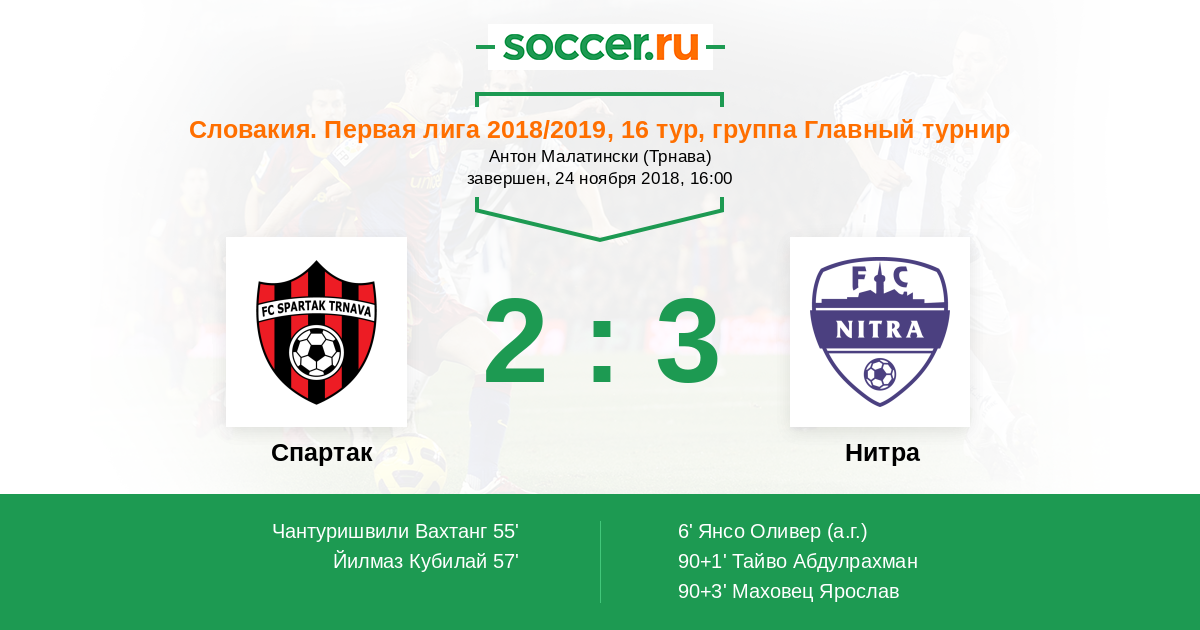 Словакия. Суперлига 10.09.2017 Спартак Логотип футбольный клуб Спартак (Трнава) 2:1 Логотип футбольный клуб Нитра Нитра