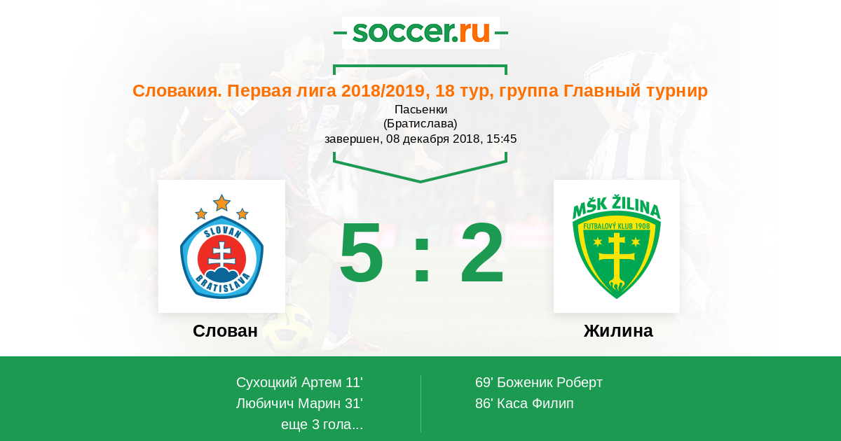 Словакия. Суперлига 11.05.2019 Слован Логотип футбольный клуб Слован (Братислава) 6:2 Логотип футбольный клуб Жилина Жилина