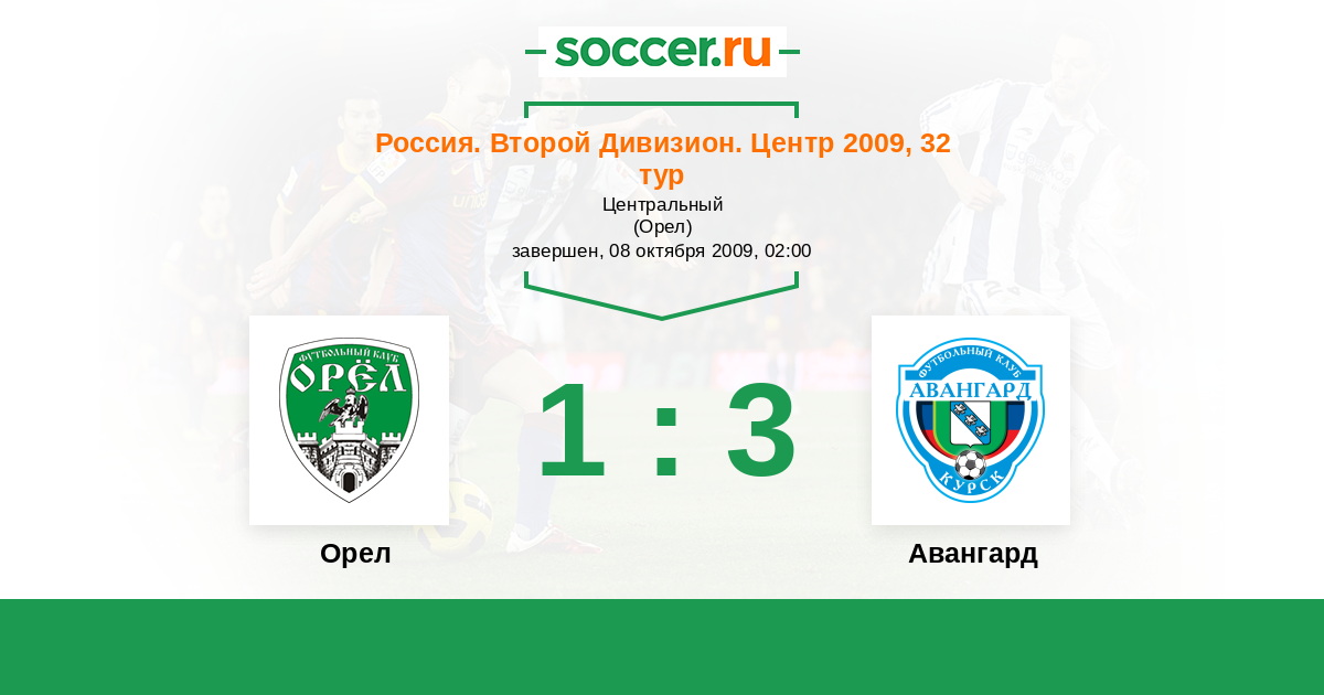 Россия. Вторая лига. Группа 3 08.07.2009 Авангард Логотип футбольный клуб Авангард (Курск) 2:0 Логотип футбольный клуб Орел Орел
