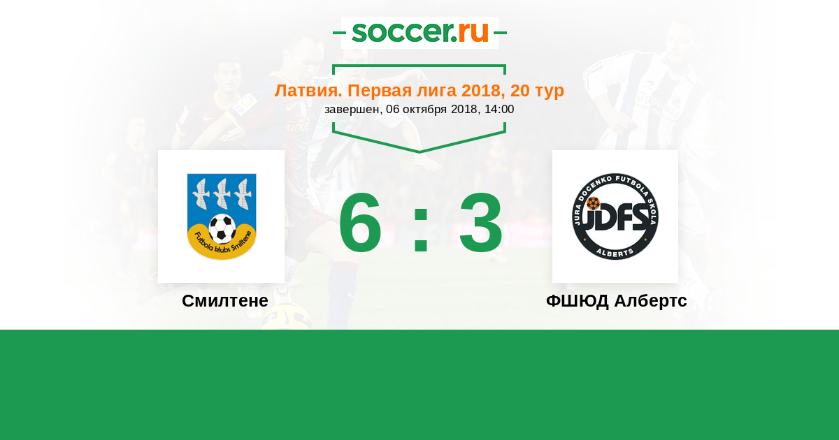 Латвия. Первая лига 14.07.2018 ФШЮД Албертс Логотип футбольный клуб ФШЮД Албертс (Рига) 7:2 Логотип футбольный клуб Смилтене Смилтене