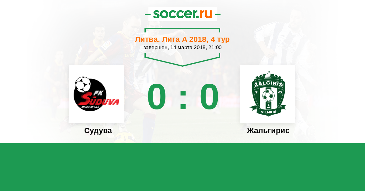Литва. Лига А 02.05.2018 Жальгирис Логотип футбольный клуб Жальгирис (Вильнюс) 2:3 Логотип футбольный клуб Судува (Мариямполе) Судува