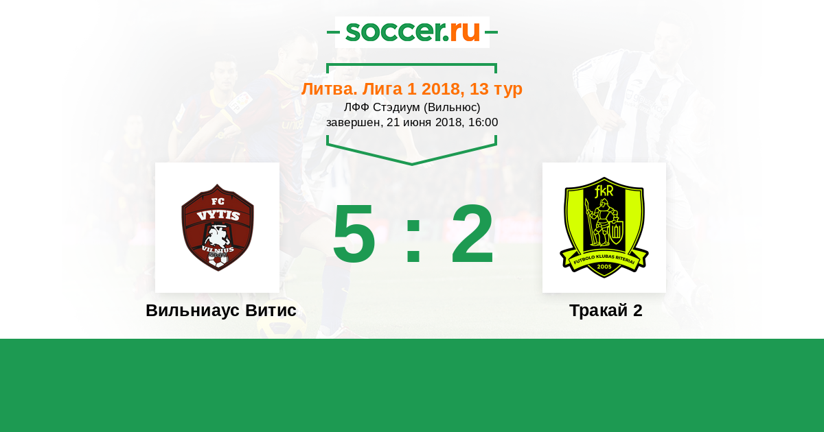 Литва. Лига 1 20.10.2018 Тракай 2 Логотип футбольный клуб Тракай 2 3:2 Логотип футбольный клуб Вильниаус Витис (Вильнюс) Вильниаус Витис