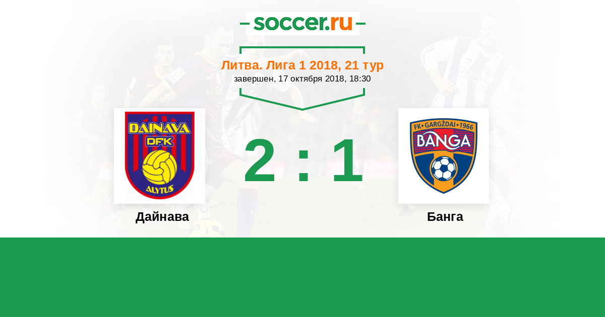 Литва. Лига 1 31.05.2017 Банга Логотип футбольный клуб Банга (Гаргждай) 2:1 Логотип футбольный клуб Дайнава (Алитус) Дайнава