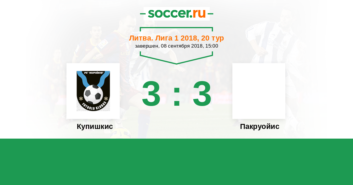Литва. Лига 1 08.09.2018 Купишкис Логотип футбольный клуб Купишкис 3:3 Логотип футбольный клуб Пакруойис Пакруойис