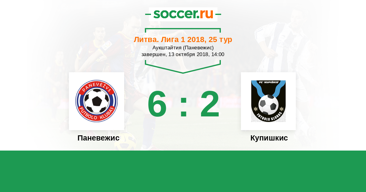 Литва. Лига 1 17.06.2018 Купишкис Логотип футбольный клуб Купишкис 0:6 Логотип футбольный клуб Паневежис Паневежис