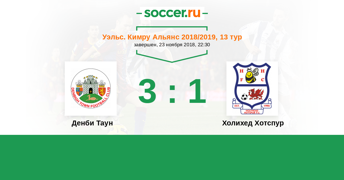 Уэльс. Кимру Альянс 13.11.2015 Денби Таун Логотип футбольный клуб Денби Таун (Денбиг) 2:1 Логотип футбольный клуб Холихед Хотспур Холихед Хотспур