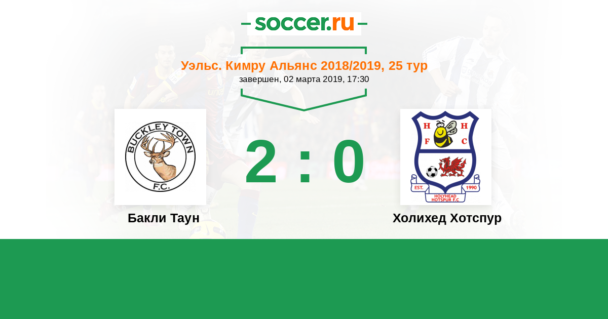 Уэльс. Кимру Альянс 19.02.2010 Холихед Хотспур Логотип футбольный клуб Холихед Хотспур 1:1 Логотип футбольный клуб Бакли Таун Бакли Таун