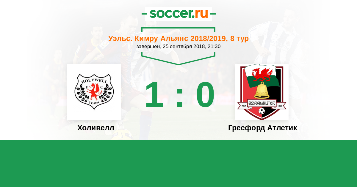 Уэльс. Кимру Альянс 13.09.2025 Холивелл Логотип футбольный клуб Холивелл 8:4 Логотип футбольный клуб Гресфорд Атлетик Гресфорд Атлетик