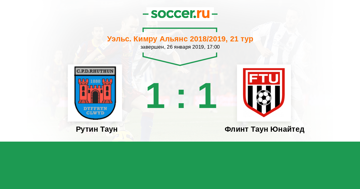 Уэльс. Кимру Альянс 20.04.2013 Рутин Таун Логотип футбольный клуб Рутин Таун 1:2 Логотип футбольный клуб Флинт Таун Юнайтед Флинт Таун Юнайтед
