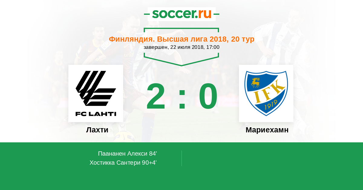 Финляндия. Высшая лига 29.07.2017 Лахти Логотип футбольный клуб Лахти 6:2 Логотип футбольный клуб Мариехамн Мариехамн