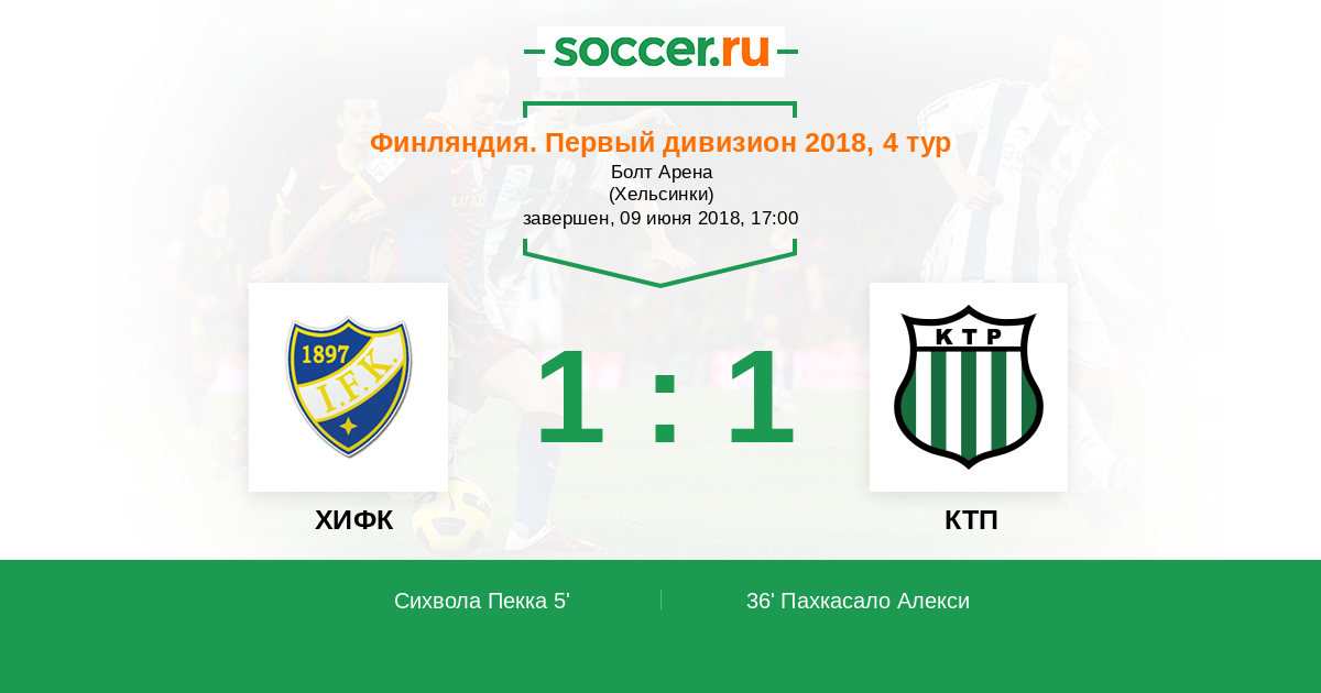 Финляндия. Какконен. Группа A 05.06.2013 КТП Логотип футбольный клуб КТП (Котка) 1:4 Логотип футбольный клуб ХИФК (Хельсинки) ХИФК