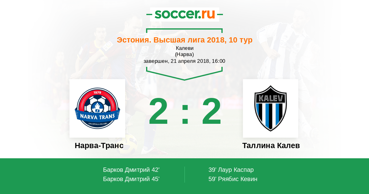 Эстония. Высшая лига 03.10.2018 Нарва-Транс Логотип футбольный клуб Нарва-Транс 3:2 Логотип футбольный клуб Таллина Калев Таллина Калев