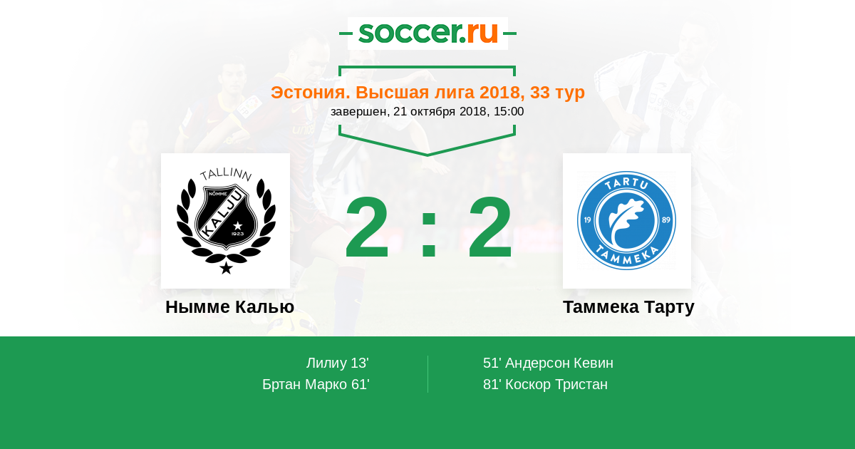 Эстония. Высшая лига 08.11.2014 Таммека Тарту Логотип футбольный клуб Таммека Тарту 0:1 Логотип футбольный клуб Нымме Калью (Таллин) Нымме Калью