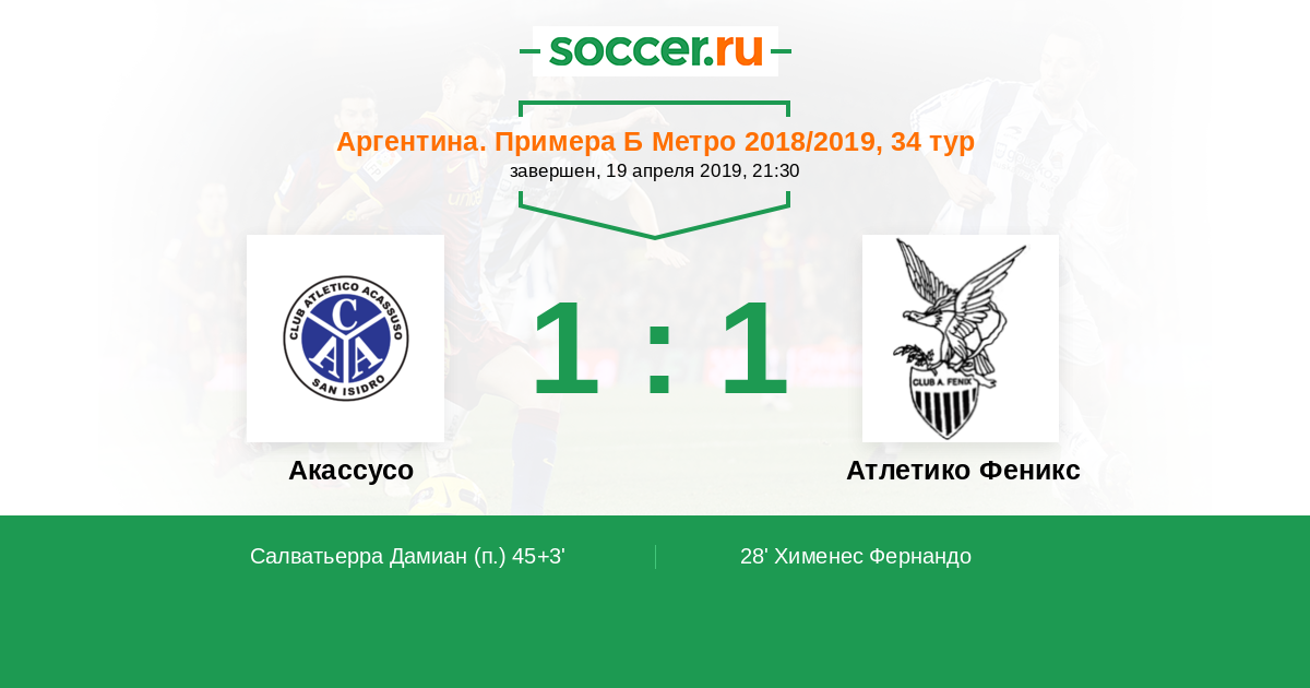 Аргентина. Примера Б Метро 18.04.2022 Атлетико Феникс Логотип футбольный клуб Атлетико Феникс (Пилар) 2:1 Логотип футбольный клуб Акассусо (Сан-Исидро) Акассусо