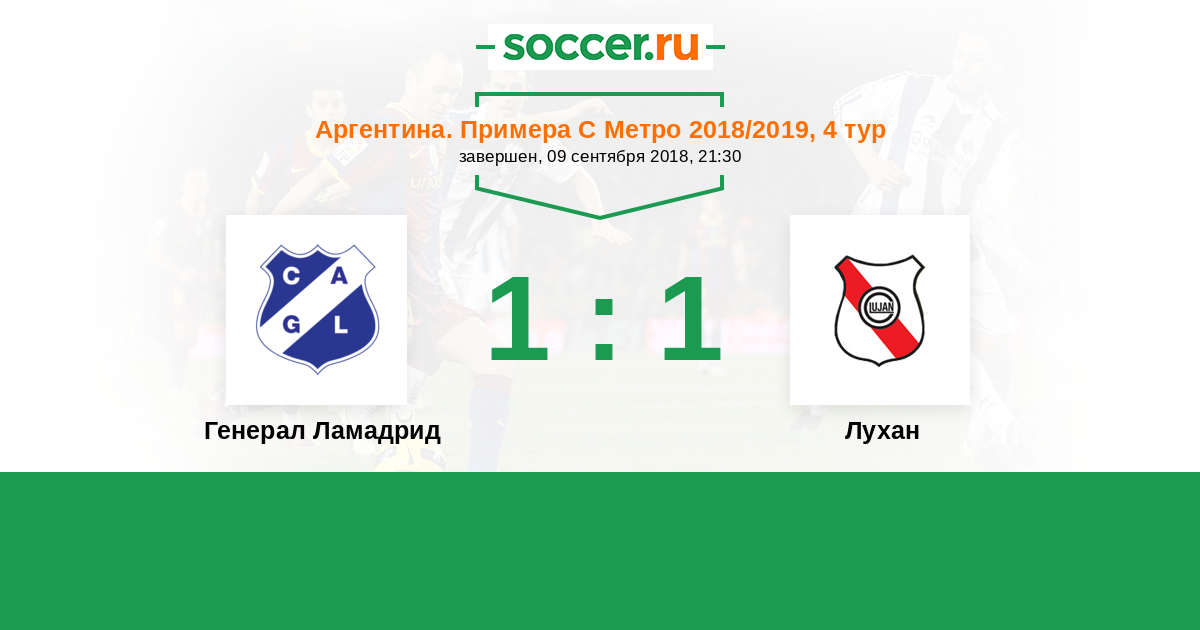 Аргентина. Примера С Метро 14.09.2019 Лухан Логотип футбольный клуб Лухан 2:3 Логотип Генерал Ламадрид (Буэнос-Айрес) Генерал Ламадрид
