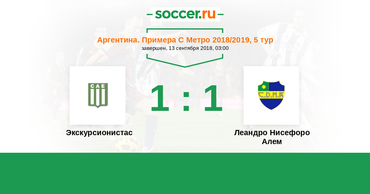 Аргентина. Примера С Метро 30.09.2017 Экскурсионистас Логотип футбольный клуб Экскурсионистас (Буэнос-Айрес) 1:2 Логотип футбольный клуб Леандро Нисефоро Алем (Буэнос-Айрес) Леандро Нисефоро Алем