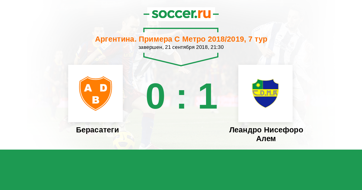 Аргентина. Примера С Метро 20.09.2017 Берасатеги Логотип футбольный клуб Берасатеги (Буэнос-Айрес) 1:4 Логотип футбольный клуб Леандро Нисефоро Алем (Буэнос-Айрес) Леандро Нисефоро Алем