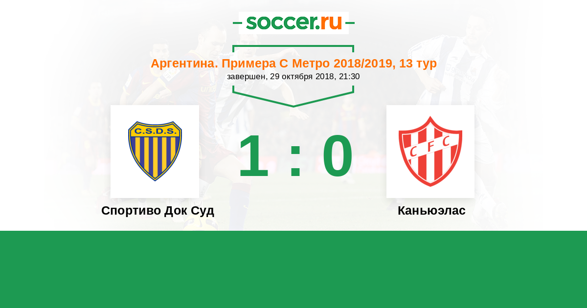 Аргентина. Примера С Метро 18.11.2019 Каньюэлас Логотип футбольный клуб Каньюэлас 1:2 Логотип футбольный клуб Спортиво Док Суд (Буэнос-Айрес) Спортиво Док Суд