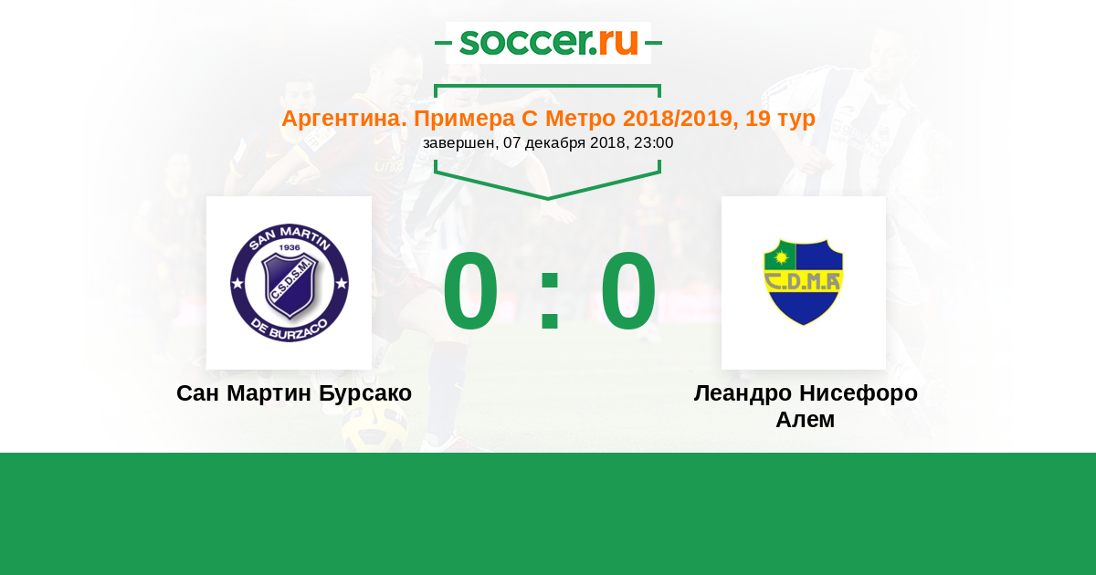 Аргентина. Примера С Метро 31.10.2017 Сан Мартин Бурсако Логотип футбольный клуб Сан Мартин Бурсако 1:0 Логотип футбольный клуб Леандро Нисефоро Алем (Буэнос-Айрес) Леандро Нисефоро Алем