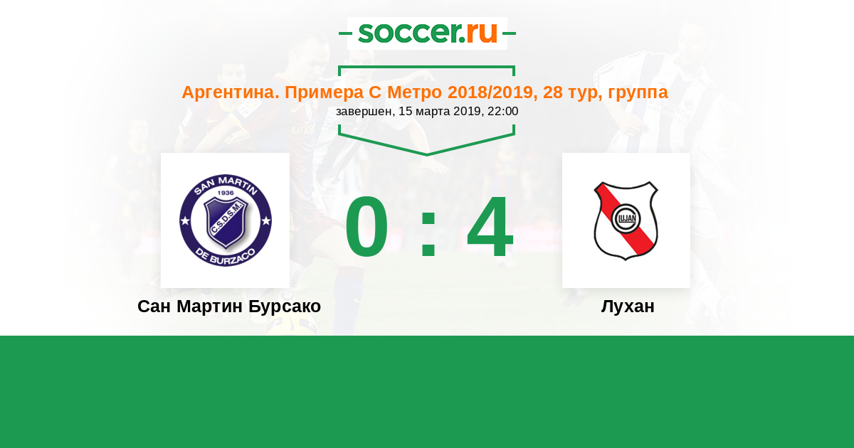 Аргентина. Примера С Метро 26.06.2022 Лухан Логотип футбольный клуб Лухан 1:0 Логотип футбольный клуб Сан Мартин Бурсако Сан Мартин Бурсако