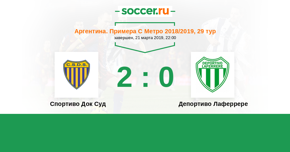 Аргентина. Примера С Метро 12.03.2021 Депортиво Лаферрере Логотип футбольный клуб Депортиво Лаферрере 1:4 Логотип футбольный клуб Спортиво Док Суд (Буэнос-Айрес) Спортиво Док Суд