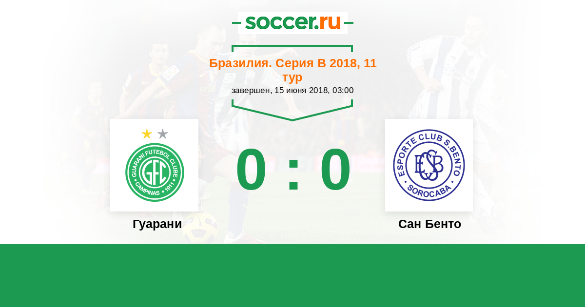 Бразилия. Серия В 06.10.2018 Сан Бенто Логотип футбольный клуб Сан Бенто 1:0 Логотип футбольный клуб Гуарани (Кампинас) Гуарани