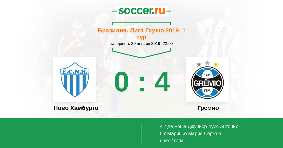 Бразилия. Лига Гаушо 14.04.2013 Ново Хамбурго Логотип футбольный клуб Ново Хамбурго 0:0 Логотип футбольный клуб Гремио (Порту-Алегри) Гремио
