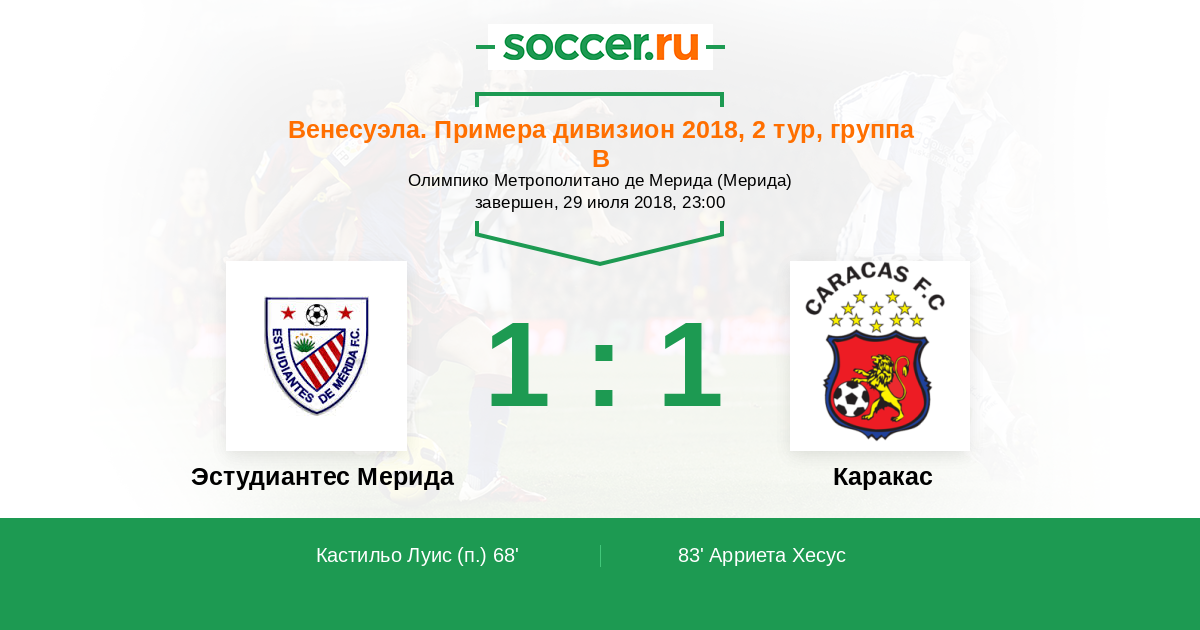 Венесуэла. Примера дивизион 02.04.2014 Эстудиантес Мерида Логотип футбольный клуб Эстудиантес Мерида 1:1 Логотип футбольный клуб Каракас Каракас