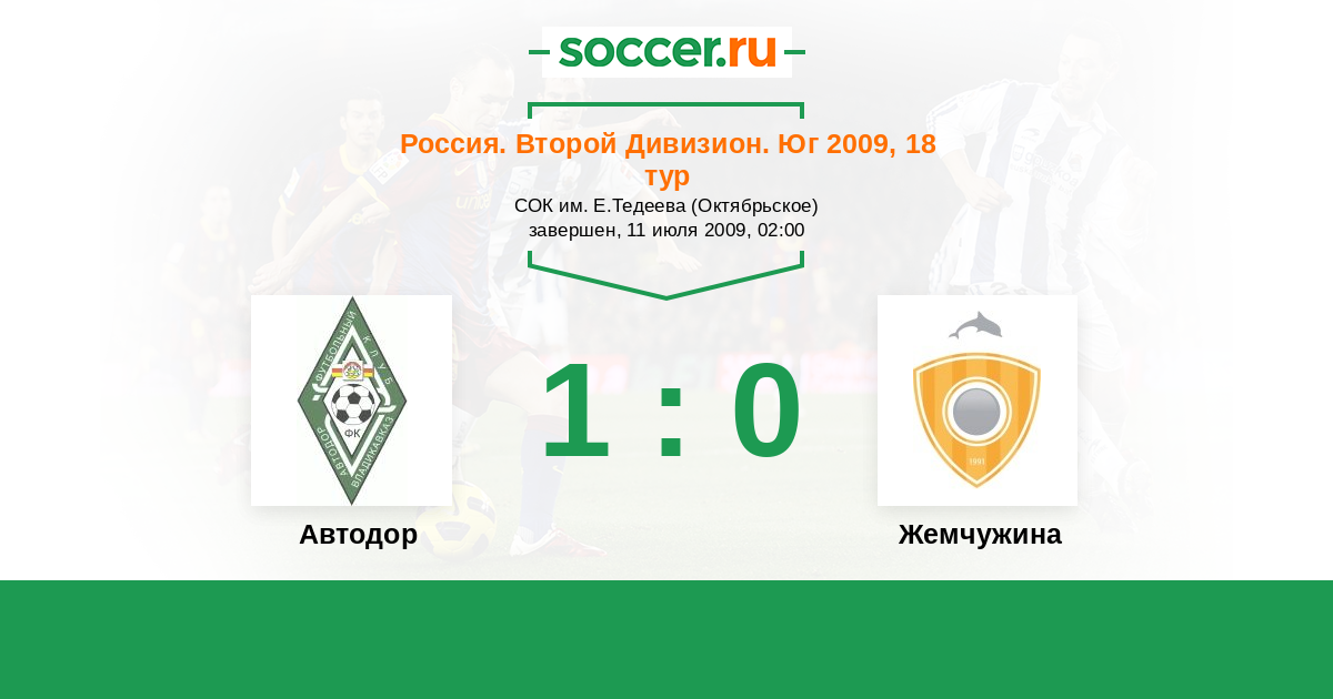 Россия. Вторая лига. Группа 1 27.10.2009 Жемчужина Логотип футбольный клуб Жемчужина (Сочи) 6:1 Логотип футбольный клуб Автодор (Владикавказ) Автодор