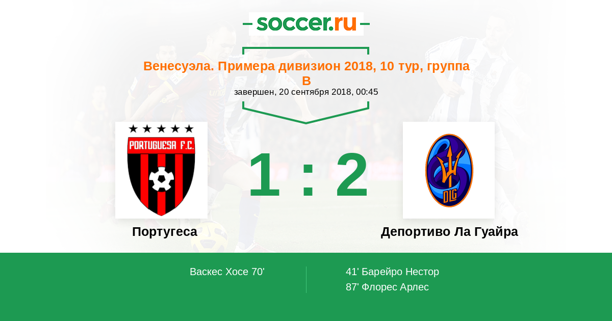 Венесуэла. Примера дивизион 31.08.2019 Португеса Логотип футбольный клуб Португеса (Акаригуа) 1:0 Логотип футбольный клуб Депортиво Ла Гуайра (Каракас) Депортиво Ла Гуайра