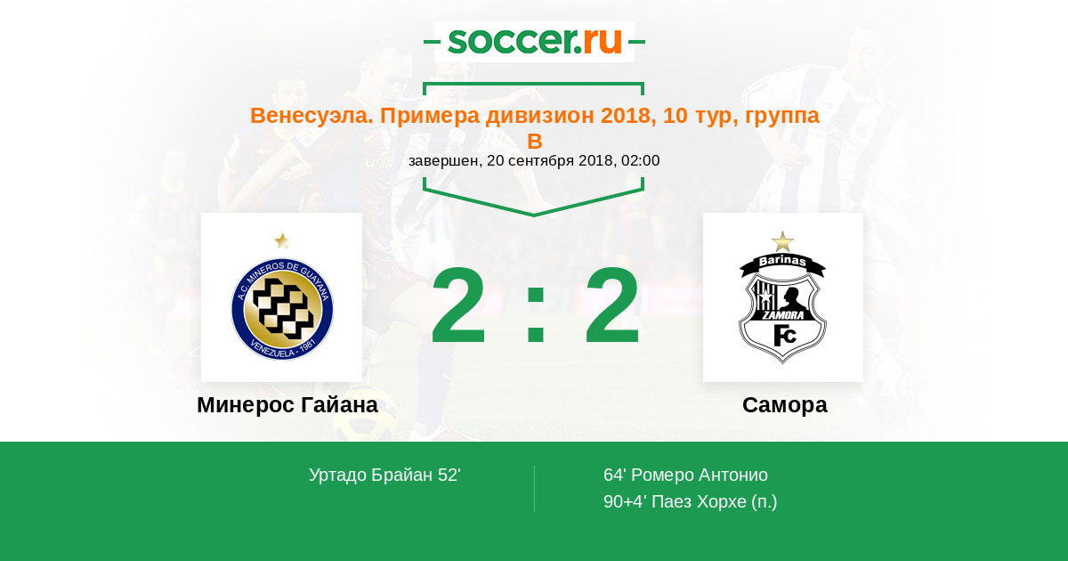 Венесуэла. Примера дивизион 11.06.2018 Минерос Гайана Логотип футбольный клуб Минерос Гайана 1:1 Логотип футбольный клуб Замора (Баринас) Замора