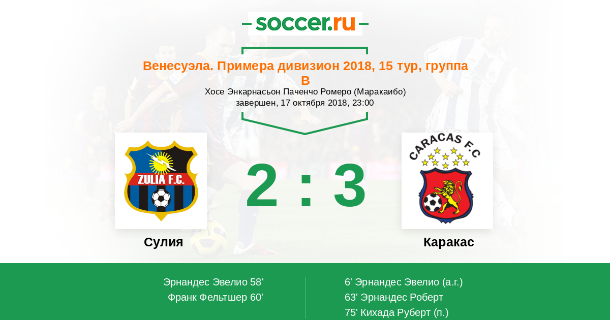 Венесуэла. Примера дивизион 16.10.2014 Каракас Логотип футбольный клуб Каракас 4:2 Логотип футбольный клуб Сулия (Маракайбо) Сулия